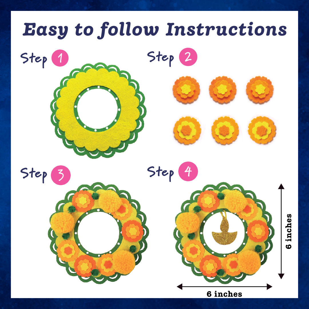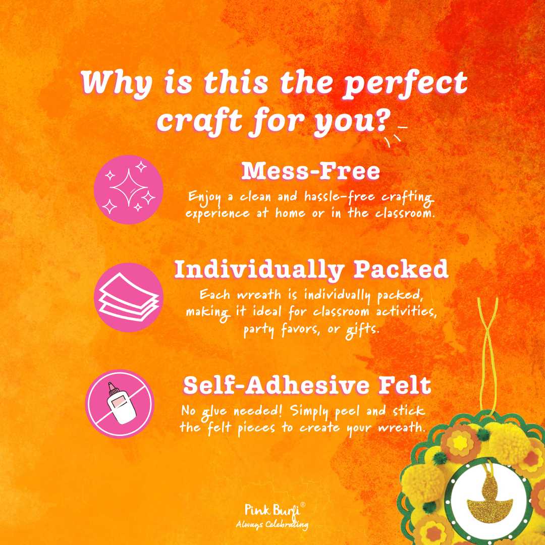 Light up your home with the Celebration Wreath: Diwali - a vibrant, mess-free DIY felt craft inspired by the Festival of Lights! Spark creativity and cultural joy with this easy-to-assemble wreath, perfect for kids, party favors, classrooms, or festive décor.