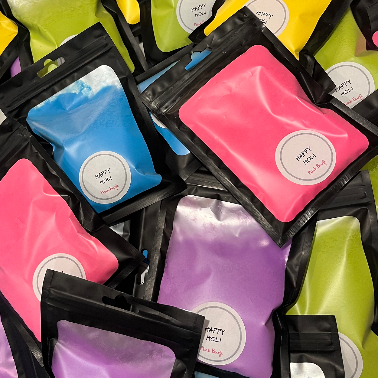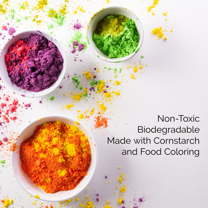 Celebrate the colorful festival of Holi with non-toxic and biodegradable Gulal. Made with food grade coloring and cornstarch powder these are safe and perfect for your family celebrations.