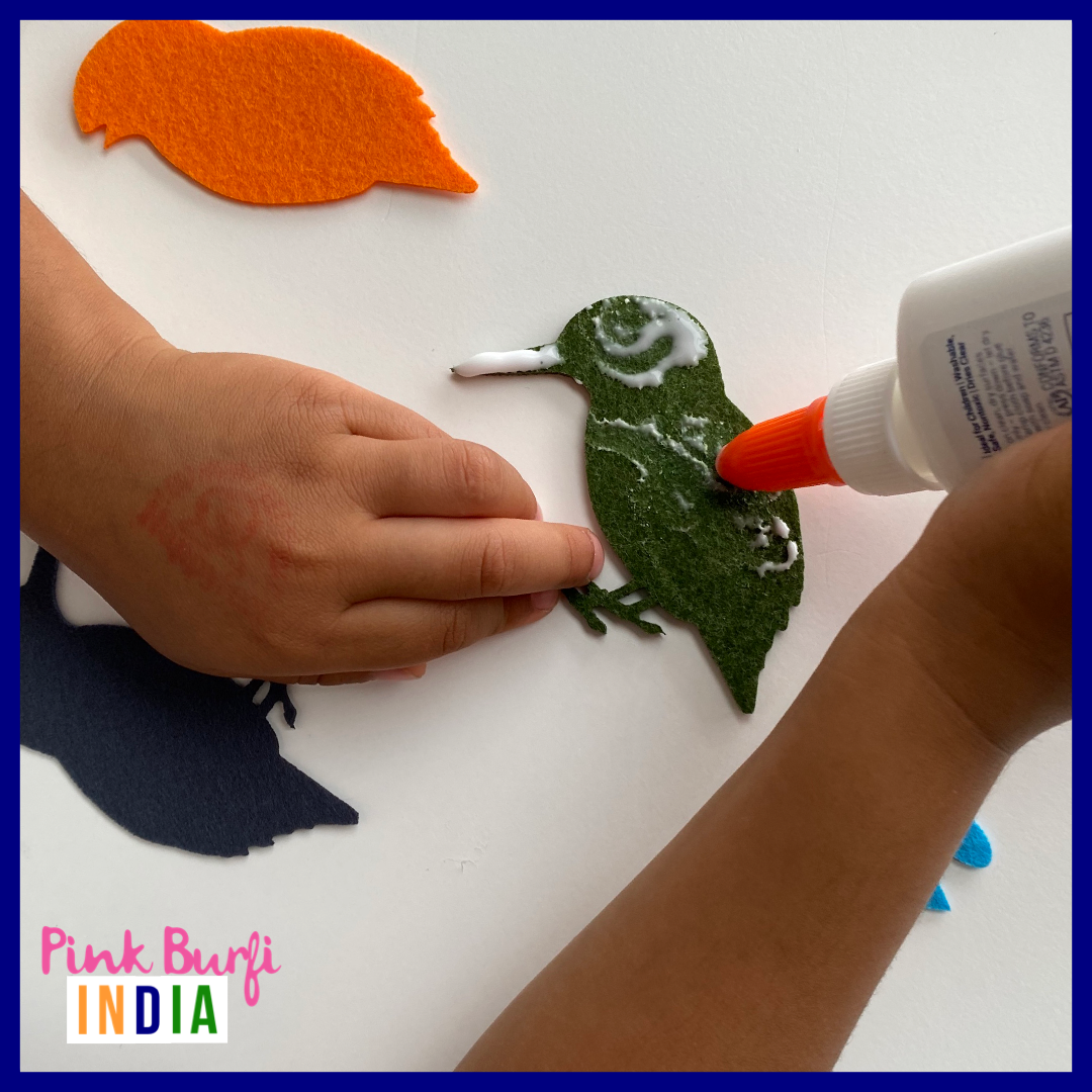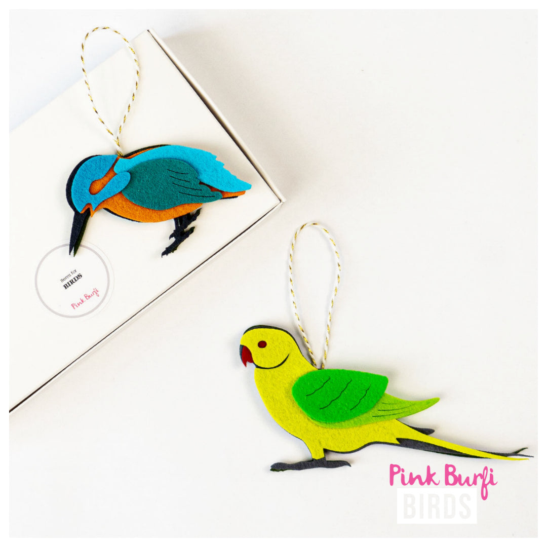 - Indian Bird Making Kit includes pre-cut felt pieces to make the two of the most iconic birds of India; Green Parrot and Kingfisher.