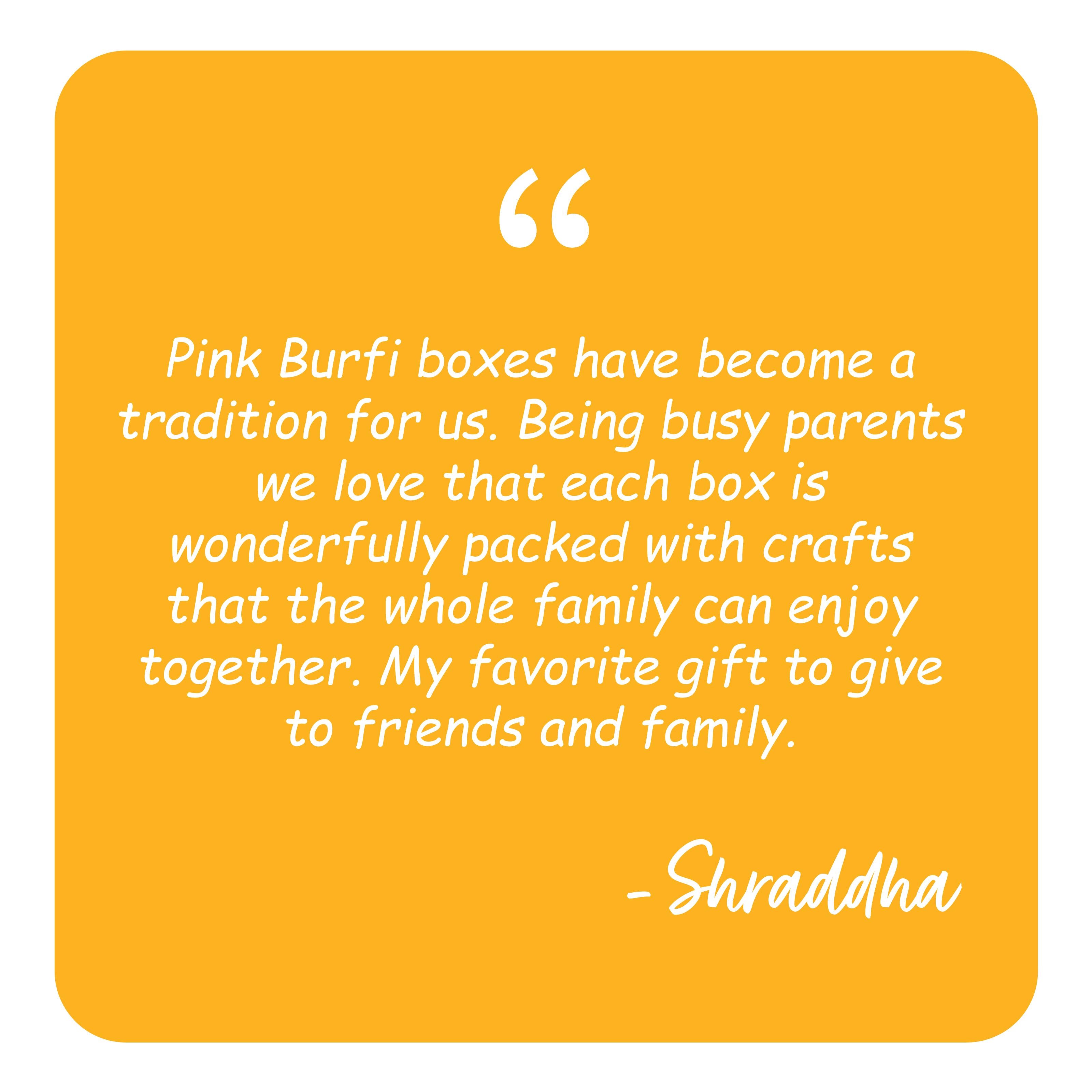 We understand that making the correct selection of toys and activities for your kids is hard. Pink Burfi has helped thousands of families incorporate Indian arts and crafts into their family playtime and they all love it.