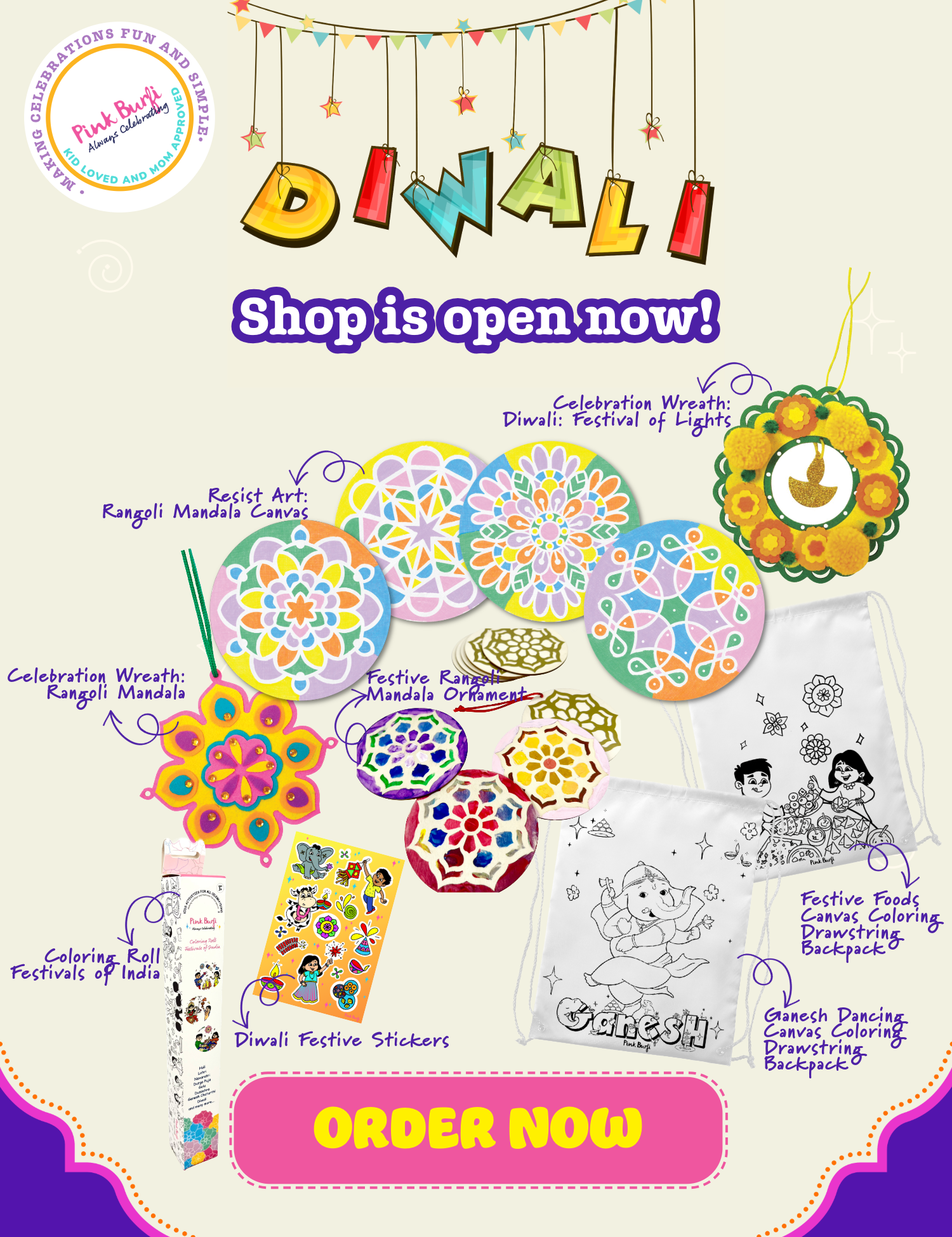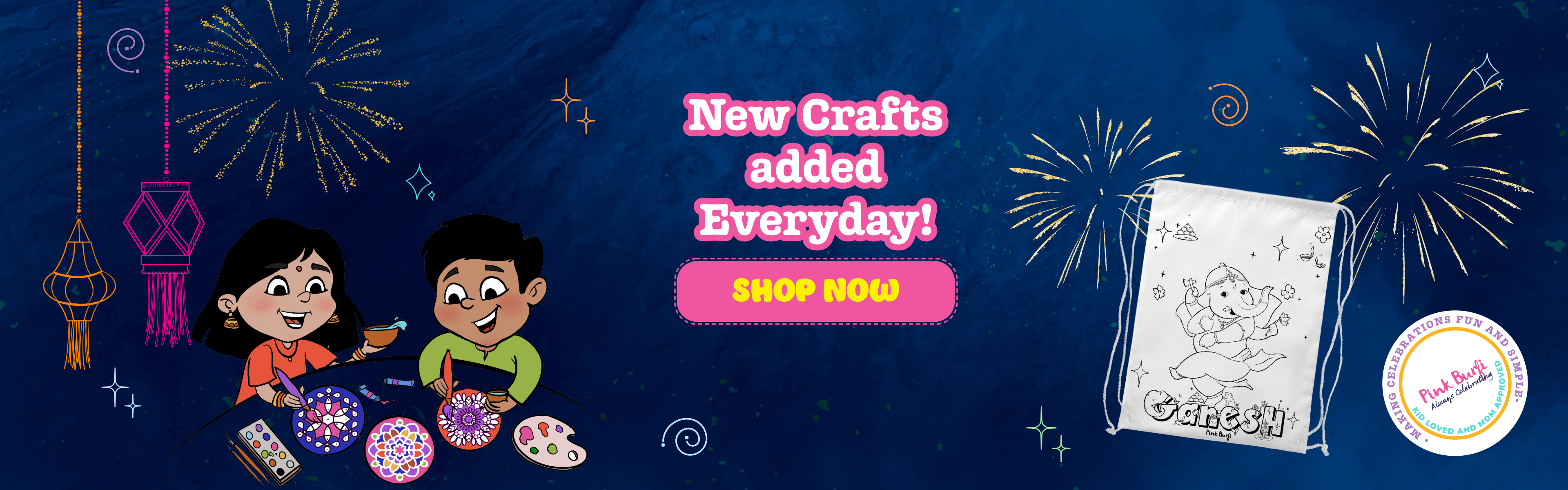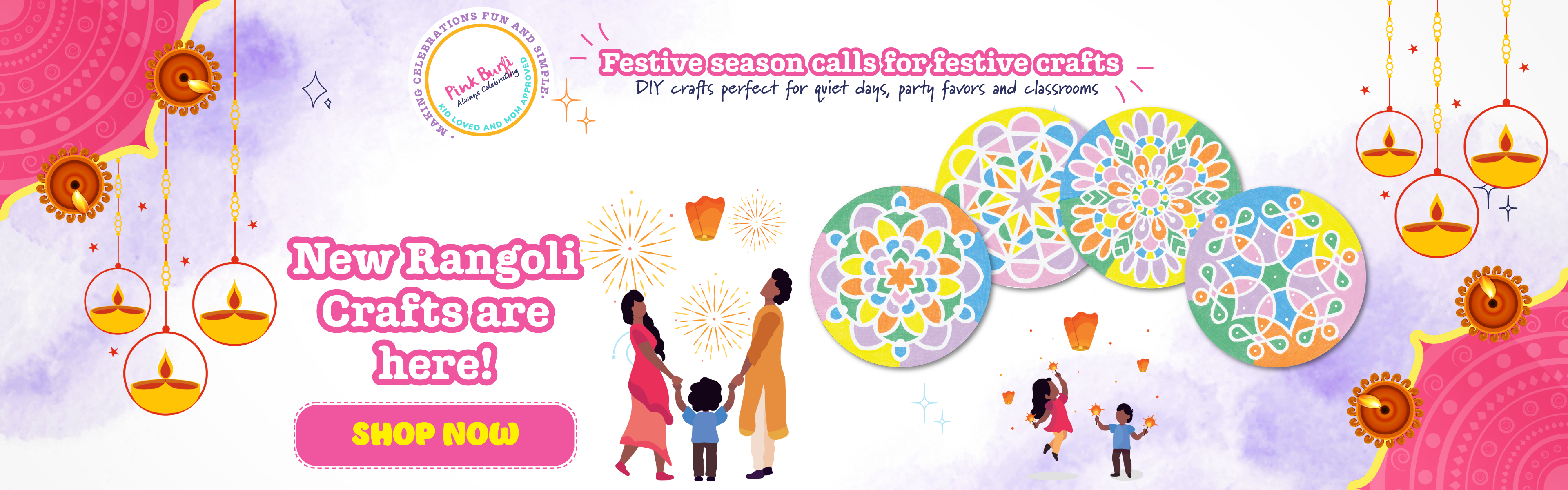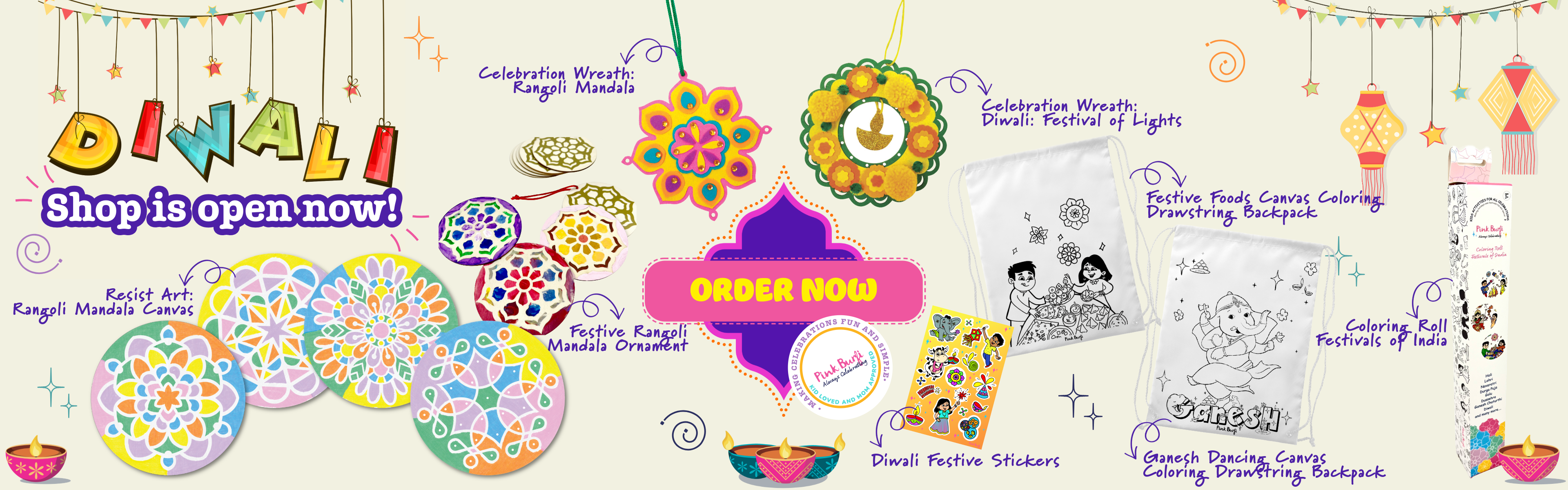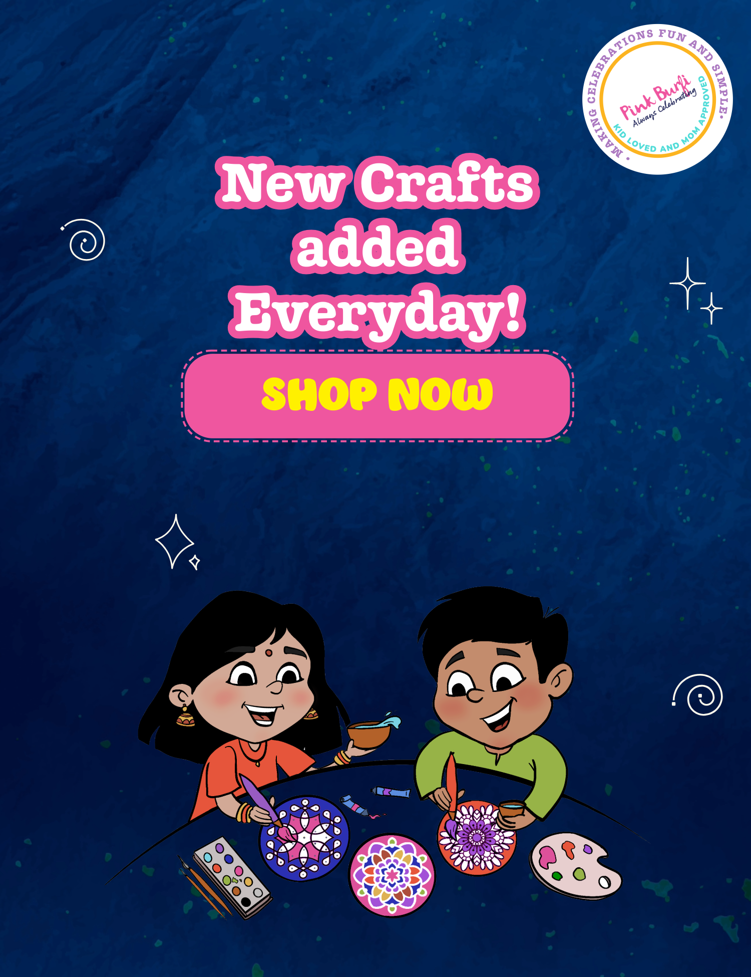 Are you looking for fun and creative ways to celebrate Indian culture with your family and friends? Do you wish there was an easier way to incorporate Indian culture and traditions into your kid’s typical play day? Are you constantly scrolling on Pinterest for kid’s Indian crafts? If you answered yes to any of these then Pink Burfi is your one stop shop for all your Indian kids arts and crafts needs. Designed by a busy working mom, all activities are designed keeping in mind the convenience of not having to spend hours planning, shopping, or preparing. Everything is ready to go and the smallest of detail is thought through, which sometimes even includes packing a tiny bottle of glue! All activities are designed keeping in mind varied skill levels and interests, with the ultimate goal to educate our little ones while they learn about all things Indian.